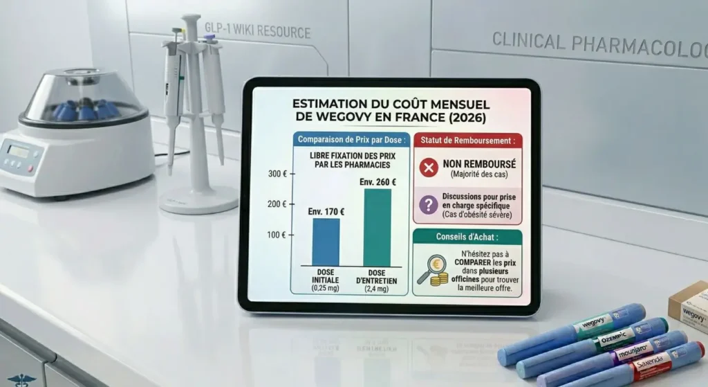 Le Wegovy n’est pas remboursé par l’Assurance Maladie en France en 2026. Cela signifie que chaque pharmacie fixe librement son prix, dans un cadre légal mais sans plafond réglementé. Le résultat : des écarts de prix considérables entre officines, parfois de plus de 100 € pour une même boîte.